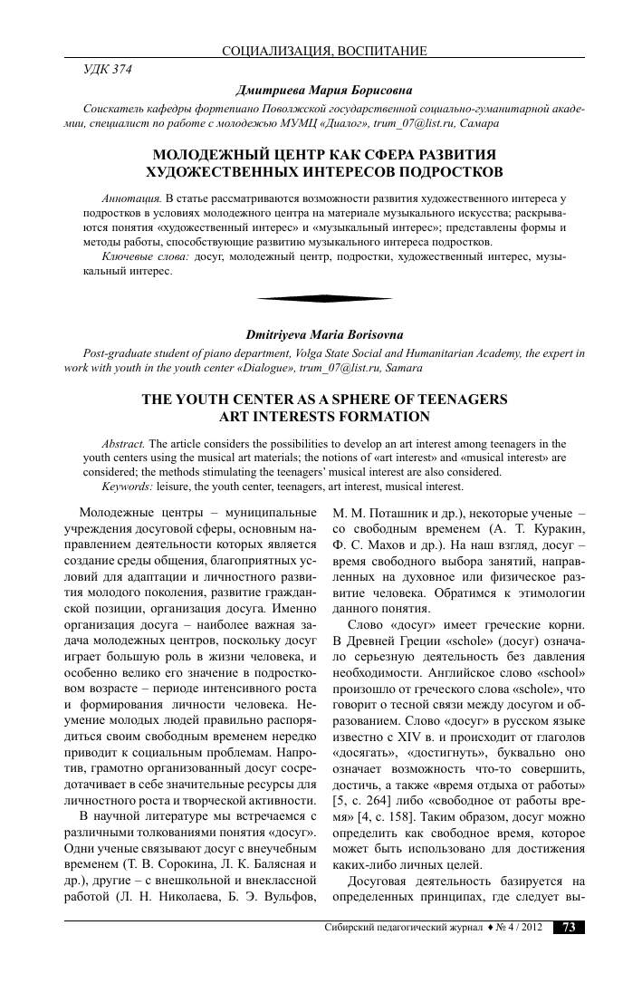 Значение центра для молодежи